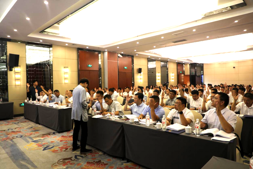 本次會議由副總經理王志勇同志主持。公司黨支部書記、董事長任本超蒞臨現(xiàn)場并發(fā)表重要講話,公司高管張鵬、李平、韓懷妙等出席會議,中層干部及各部門員工共計一百二十余人參會。
